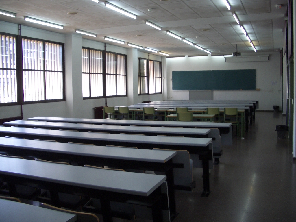 01/14 (0 14/14) L'aula consta de 26 places, climatització, possibilitat d'enfosquir l'aula, ordinador fix a l'aula, connexió a internet mitjançant cable i wifi, pantalla de projecció elèctrica o manual, projector LCD, equip purificador d'aire portàtil.