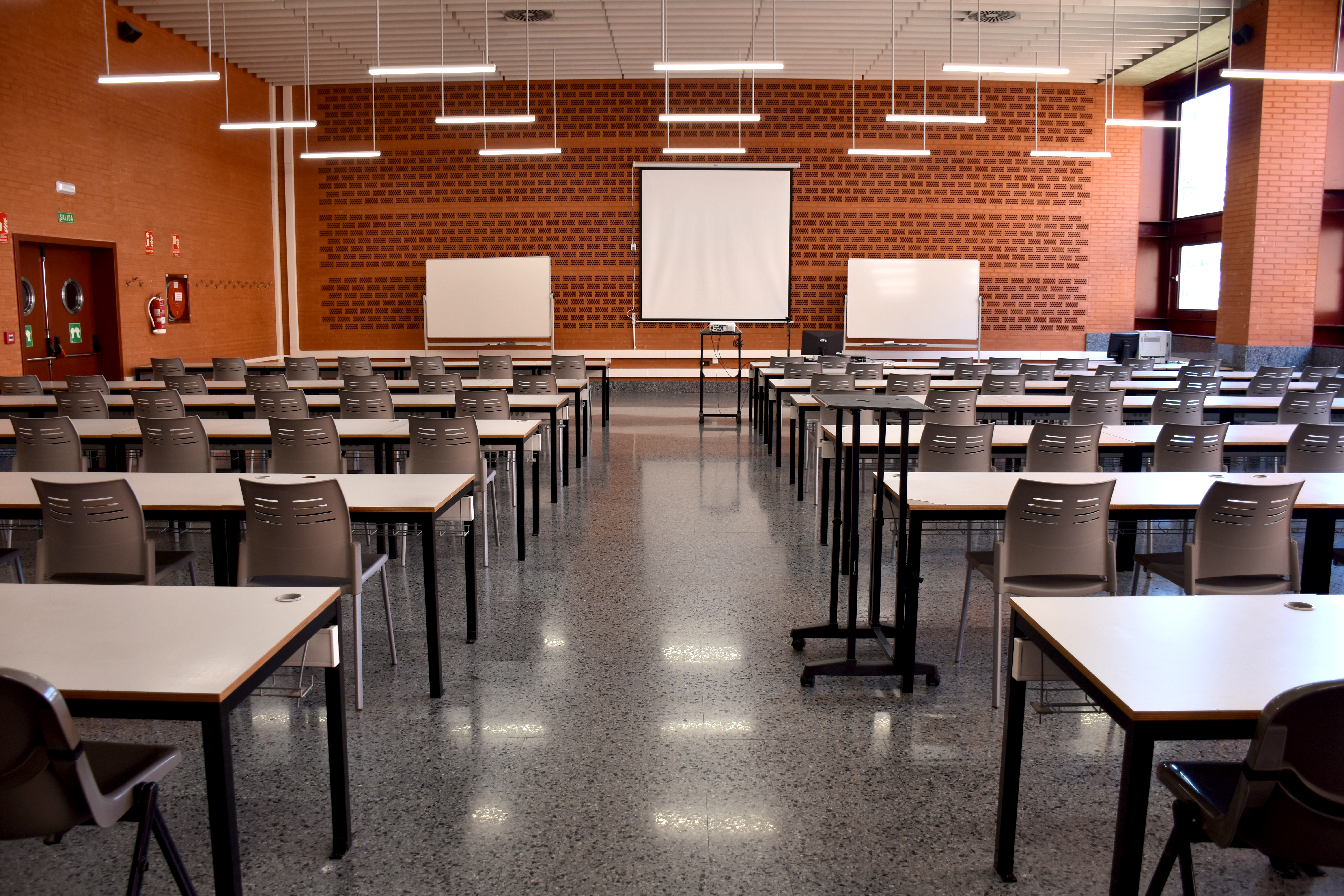 L'aula compta amb 60 places, taules electrificades, micròfons, megafonia, videoprojector, equipament informàtic, pissarra de retolador, 24 endolls de paret, control lumínic.