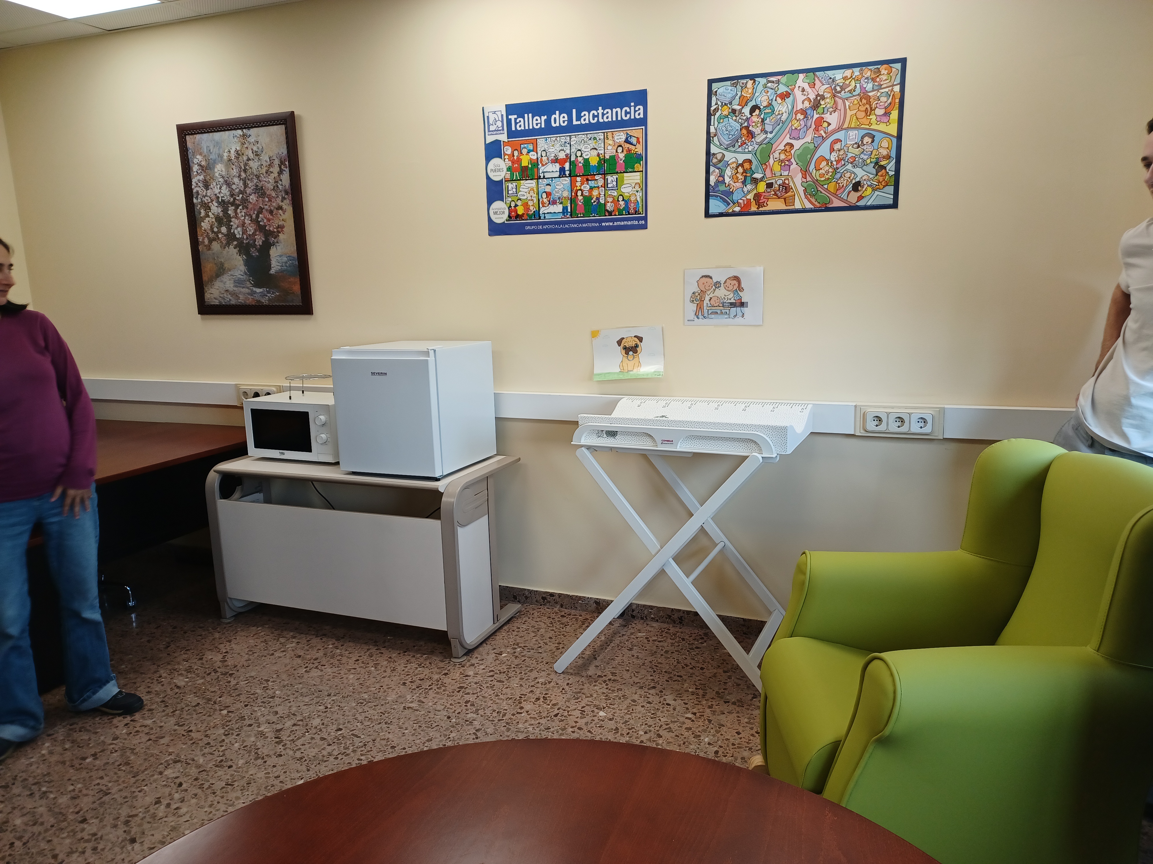 Situada al costat de la sala d'actes de l'edifici de Capçalera és un espai tranquil i ben il·luminat que compta amb una butaca còmoda, un canviador de bolquers, gel i paper per a la higiene de mans, a més d'un pòster informatiu sobre la lactància materna.