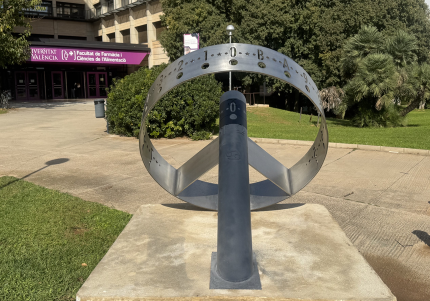 Desde hace unos días, el campus de Burjassot-Paterna de la Universitat de València cuenta con un reloj solar ecuatorial instalado en el jardín que hay frente a la Facultat de Farmàcia i Ciències de l’Alimentació.