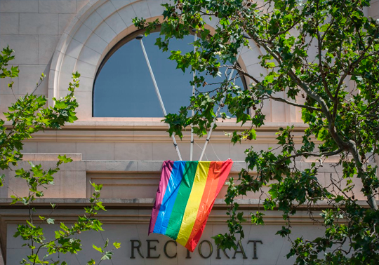 The LGTBI flag waves in the UV buildings