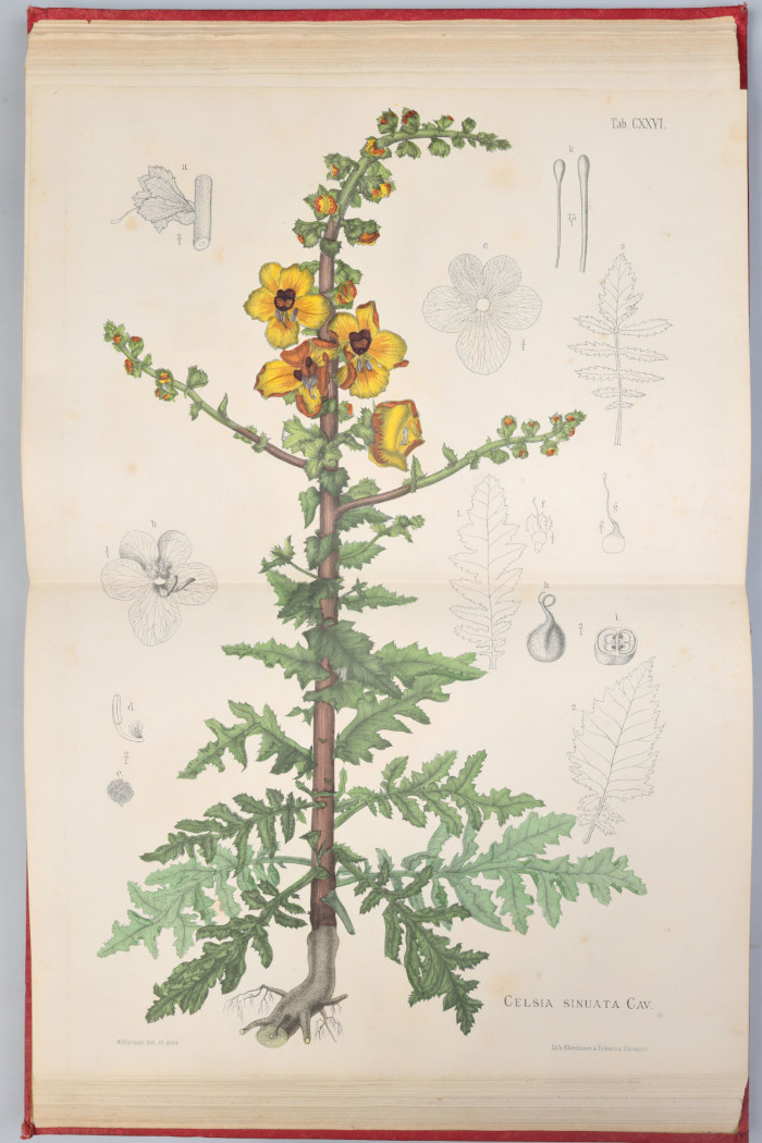 Entre les obres exposades s’inclouen diverses edicions derivades de l’obra clàssica de Dioscòrides Pedani De materia medica, com De historia stirpium commentarii insignes de Leonhart Fuchs (1542). També es mostra l’obra singular Plantarum seu stirpium icones de Matthias de l’Obel, impresa per Cristophe Plantin l’any 1581, i diversos treballs del metge espanyol Francisco Suárez de Ribera, així com l’obra del naturalista valencià Antoni Josep Cavanilles, i una representació de les esplèndides litografies de l’obra de Heinrich Moritz Willkomm, que van marcar un abans i un després en l’estudi de la flora ibèrica. La il·lustració botànica reflecteix també la participació activa de la dona, com es pot apreciar en l’obra de Castore Durante, els gravats de la qual foren realitzats per Isabella Parasole. En ells l’autora incorpora paisatges de fons amb figures humanes i animals i aporta així riquesa compositiva a les representacions vegetals.