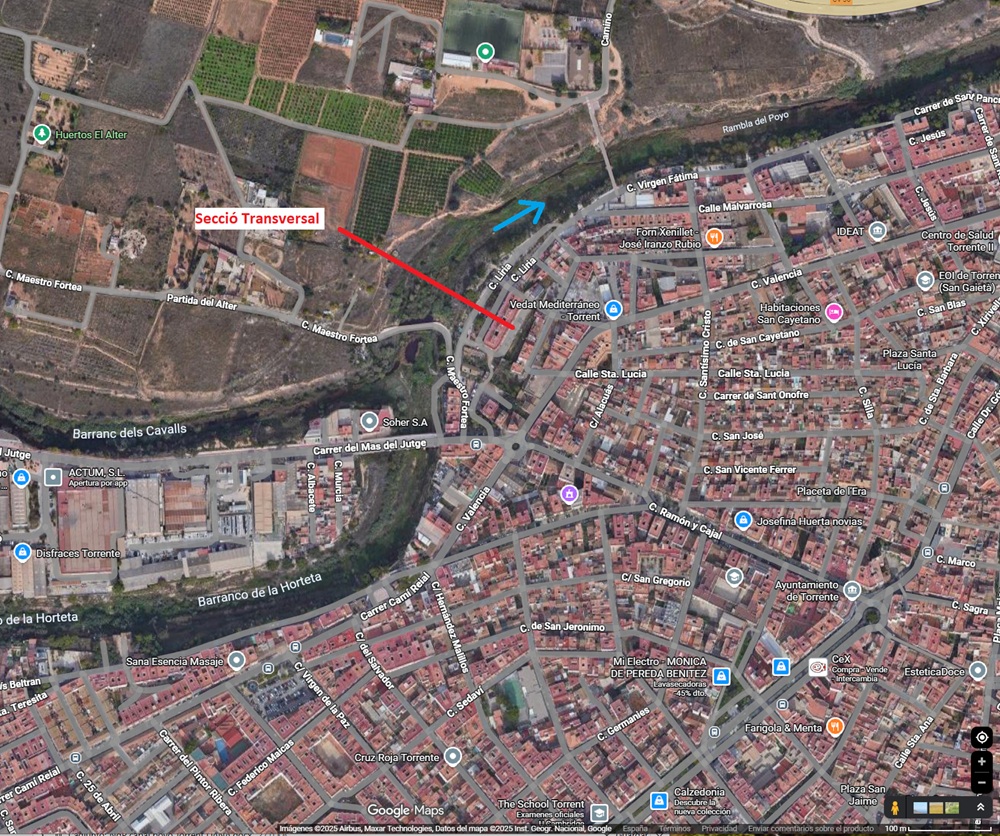El estudio identifica los “cuellos de botella” en la red de drenaje hidrológico. Estos puntos críticos ocurren donde la sección aguas abajo de un canal es significativamente menor que la sección aguas arriba. En la rambla de Poyo, la confluencia con el barranco de la Horteta en Torrent arrojó una sección mojada transversal de 2271 m². Sin embargo, la sección está restringida progresivamente aguas abajo, reduciéndose en una distancia de 10 km a 205 m² cerca de Massanassa. Este embotellamiento fue la causa de la inundación generalizada entre Torrent y Massanassa, que resultó en daños materiales y numerosas víctimas, detalla Rafael Muñoz, primer firmante del artículo.