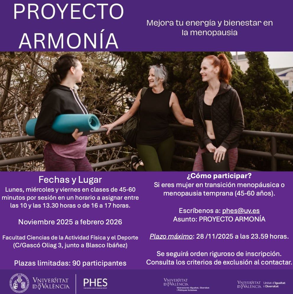 Les Clíniques de la Universitat de València expresan su apoyo institucional al Proyecto ARMONÍA, una iniciativa innovadora impulsada por el grupo de investigación PHES con la colaboración del Vicerrectorado de Igualdad, Diversidad y Políticas Inclusivas, la Unidad de Igualdad y Diversidad y el Servicio de Formación Permanente e Innovación Educativa.