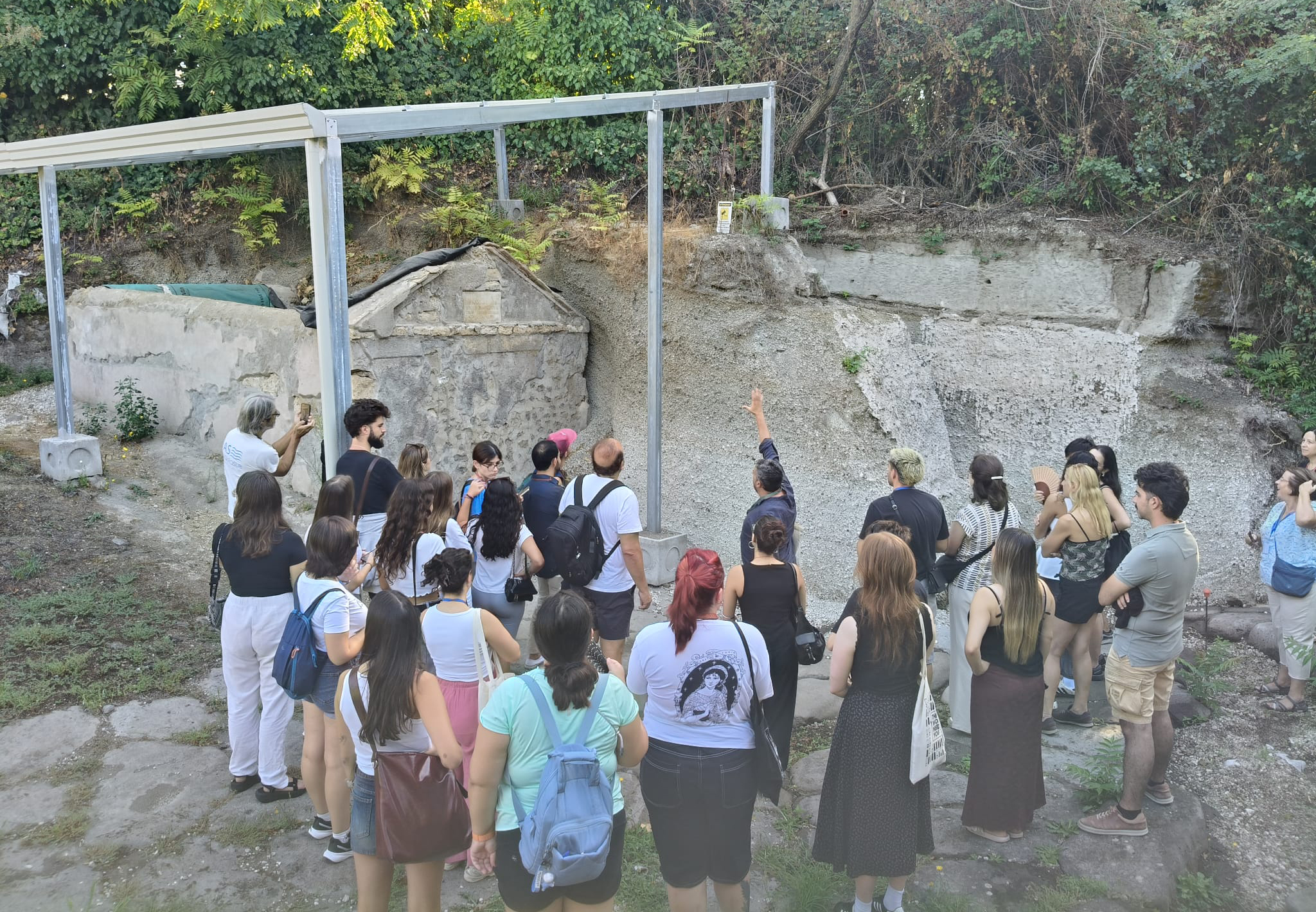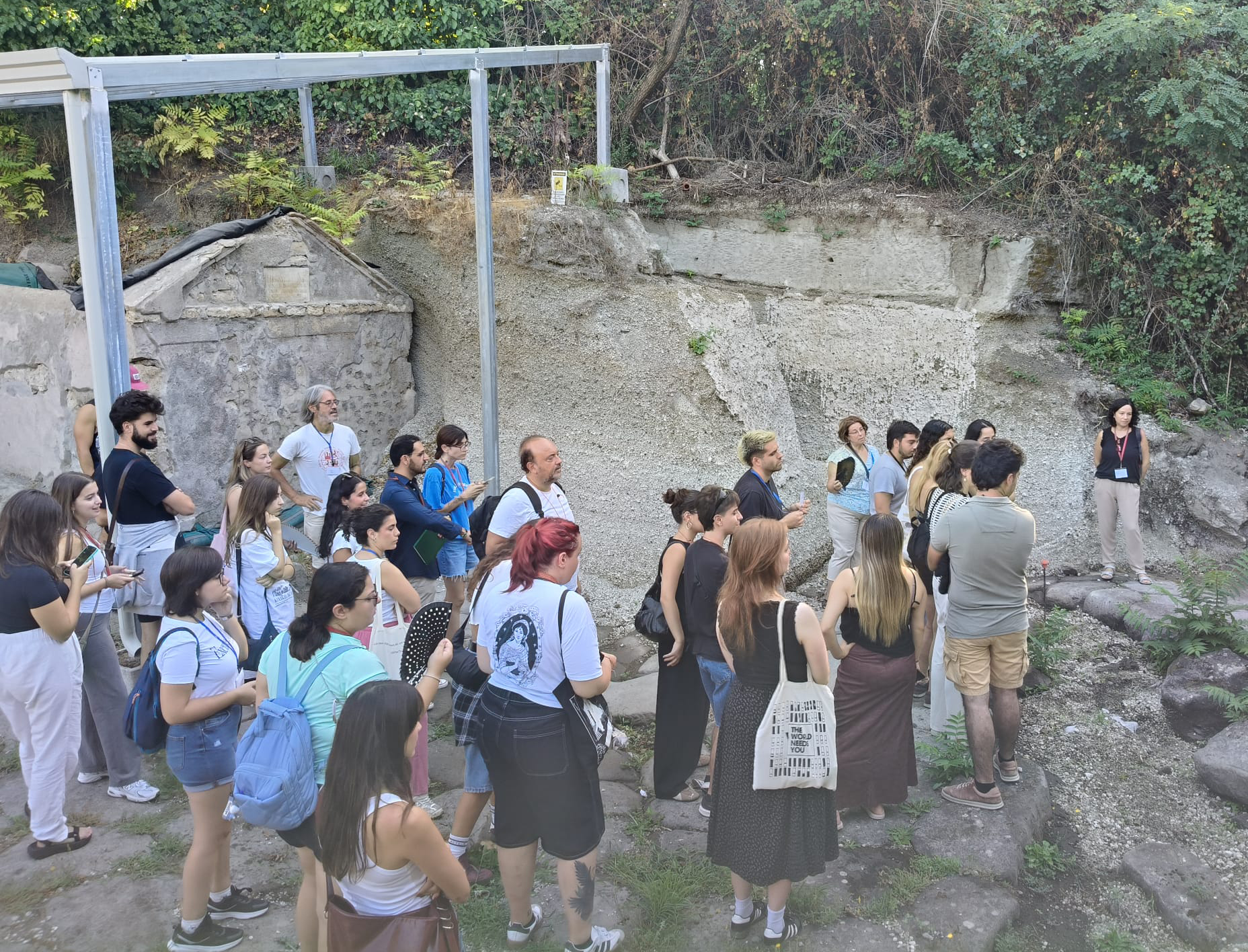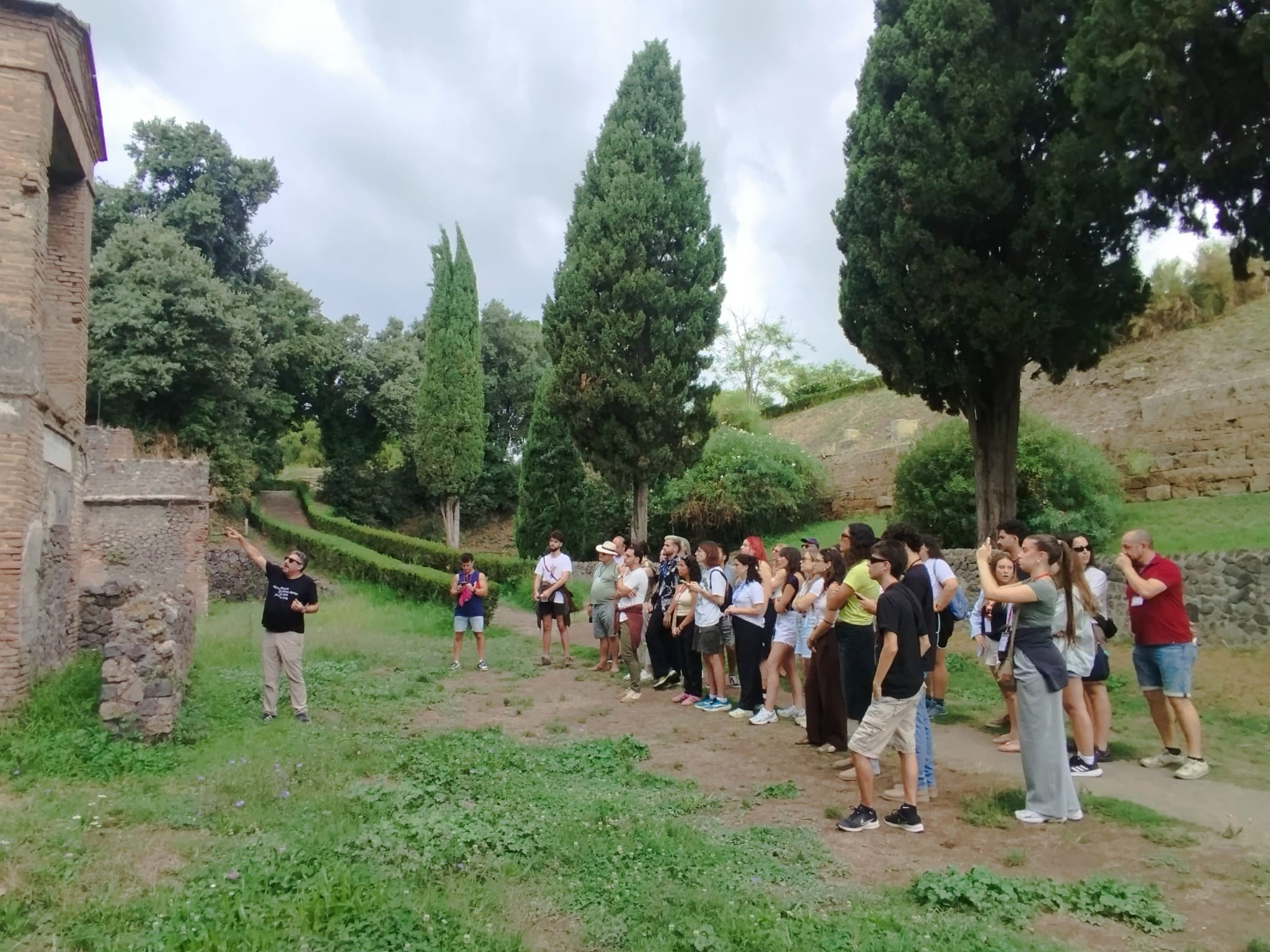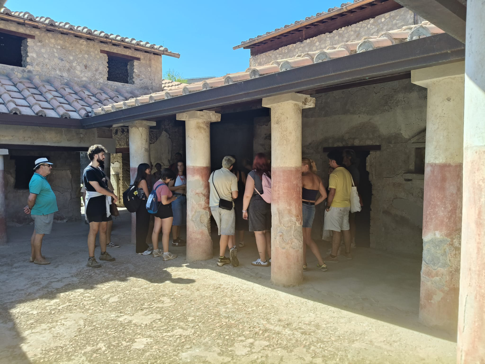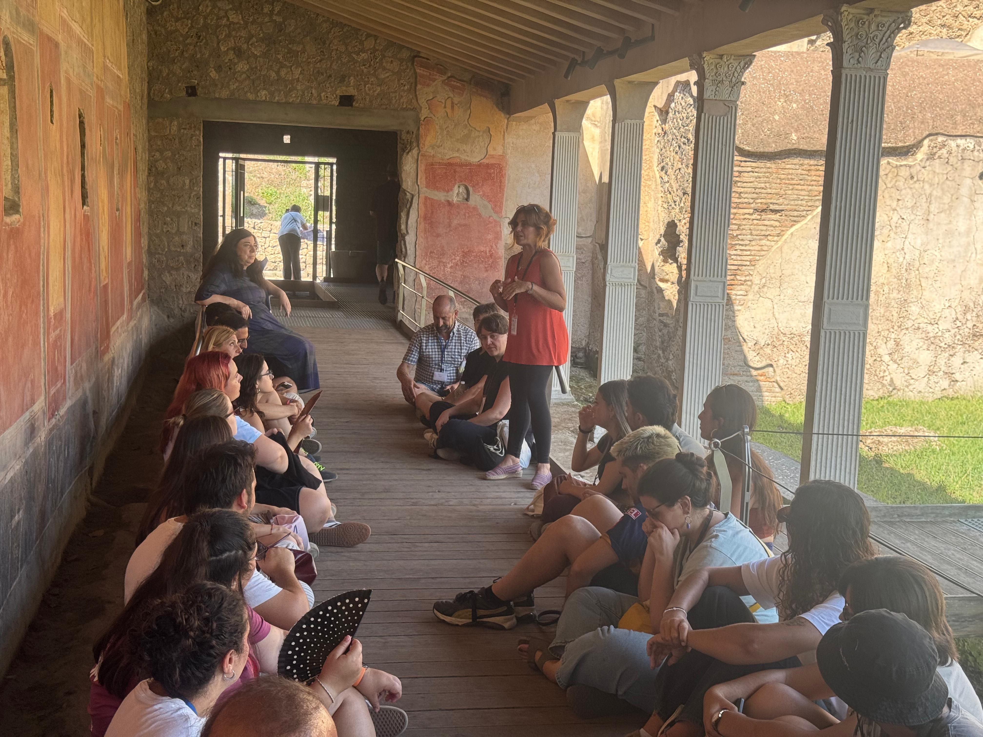 A lo largo del curso, el estudiantado ha podido trabajar sobre el terreno en algunos de los espacios más singulares de la antigua ciudad romana —como la Casa de los Vettii, el Foro o las termas públicas—, donde se conservan excepcionales muestras de la vida cotidiana y del arte mural del siglo I d.C.
