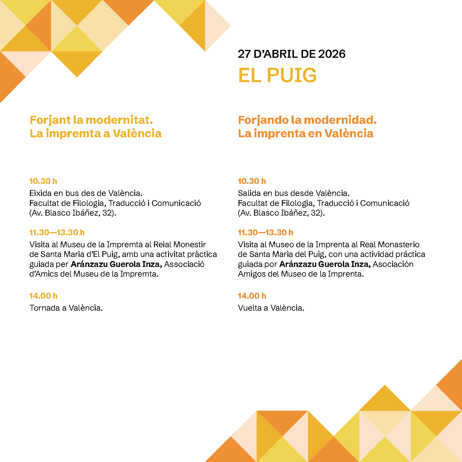 10.30. Salida desde València. Facultat de Filologia, Traducció i Comunicació (Avda. Blasco Ibáñez, 32)