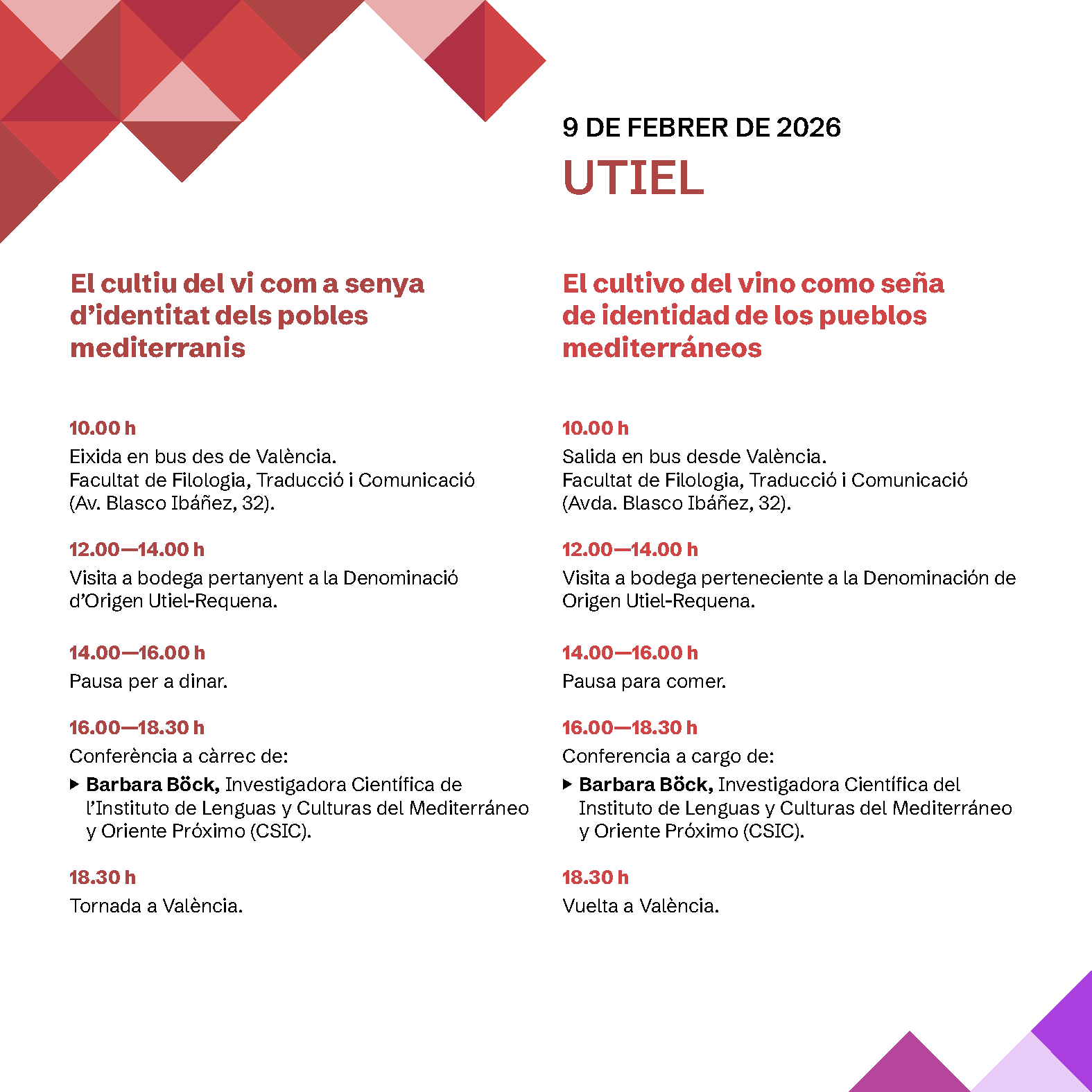 16.00-18.30. Conferència a cargo de Barbara Böck, Investigadora Científica del Instituto de Lenguas y Culturas del Mediterráneo y Oriente Próximo (CSIC)