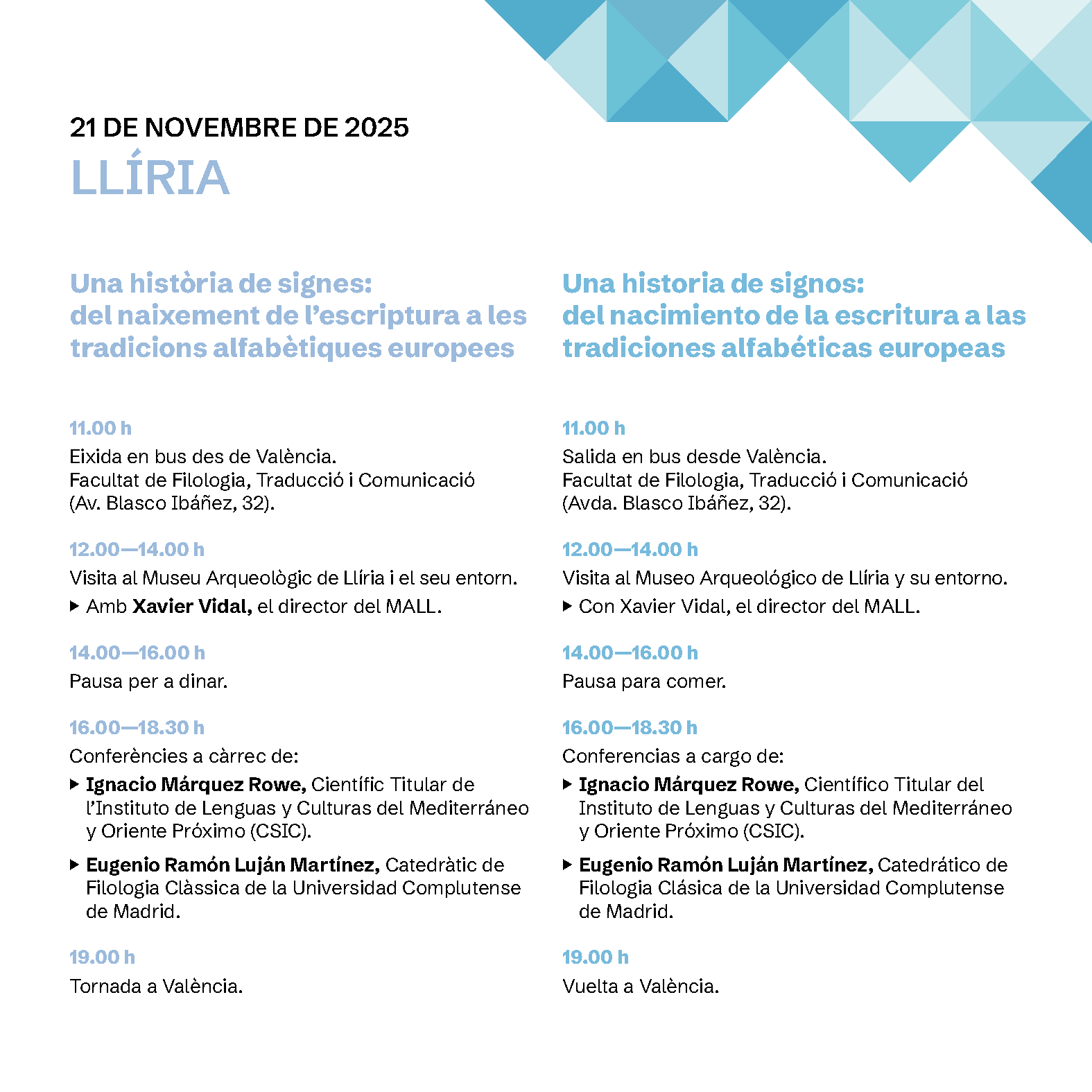 Una historia de signos: del nacimiento de la escritura a las tradiciones alfabéticas europeas. Incluye visita práctica al Museo Arqueológico de Llíria y su entorno histórico