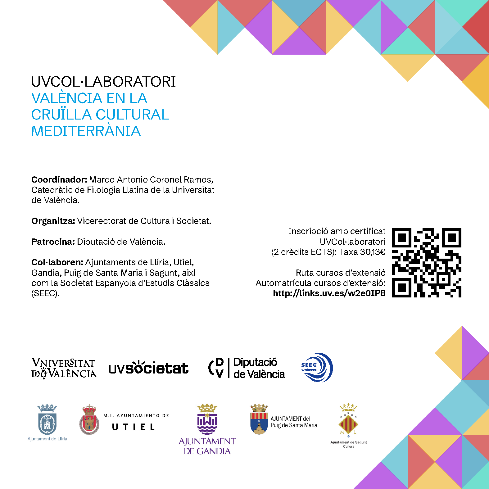 Esta formación tiene por objeto realizar cuatro catas en la cultura valenciana contemplada desde la perspectiva de las relaciones culturales que València ha mantenido tradicionalmente con el resto del mediterráneo. Este tema se analiza de modo interdisciplinar gracias a la presencia de arqueólogos, historiadores y filólogos. En ninguno de los planes de estudio vigentes se contempla una perspectiva de estudio como la propuesta y, por ello, permitiría a estudiantes de grados distintos profundizar en aspectos que tal vez estudien de manera colateral o que ni siquiera tengan la oportunidad de tratarlos en el grado. La formación tiene un marcado carácter práctico a través de tres visitas al Museo Arqueológico de Llíria, a una bodega de Utiel y al Museo de la Imprenta situado en el Real Monasterio del Puig.