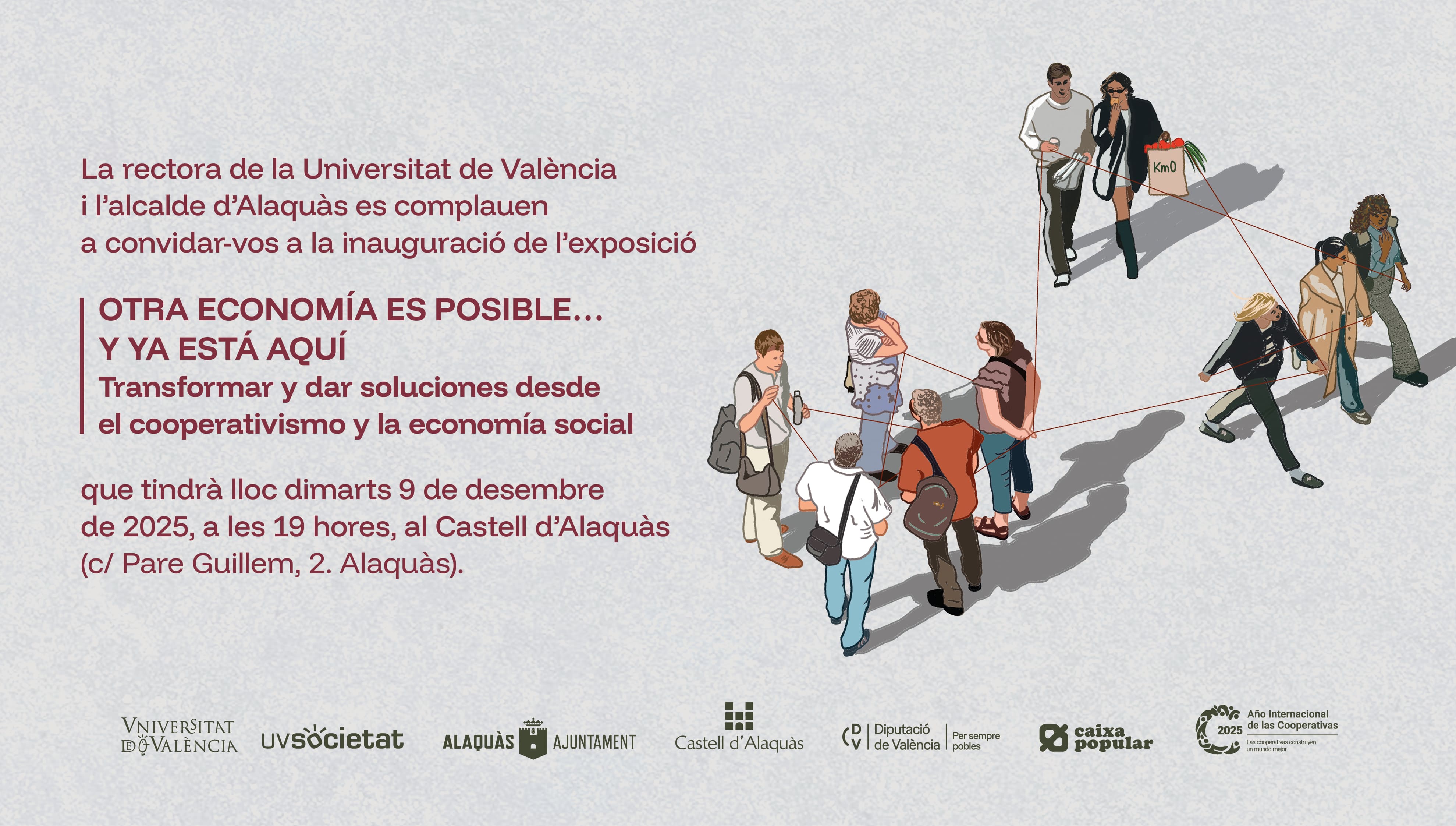 El relato expositivo combina datos, ejemplos y contenidos accesibles con un conjunto coherente de recursos visuales y audiovisuales. Las ilustraciones originales de Elena Muñoz Collado, creadas específicamente para esta muestra, aportan una capa expresiva y simbólica que facilita la lectura y reforza la dimensión humana del cooperativismo. A ello se suma el documental dirigido por Elena Morales, que incorpora los testimonios de cooperativistas, profesionales y personas vinculadas a diversas entidades del sector. Sus voces permiten comprender desde dentro la complejidad, los valores y el alcance real del cooperativismo valenciano contemporáneo.