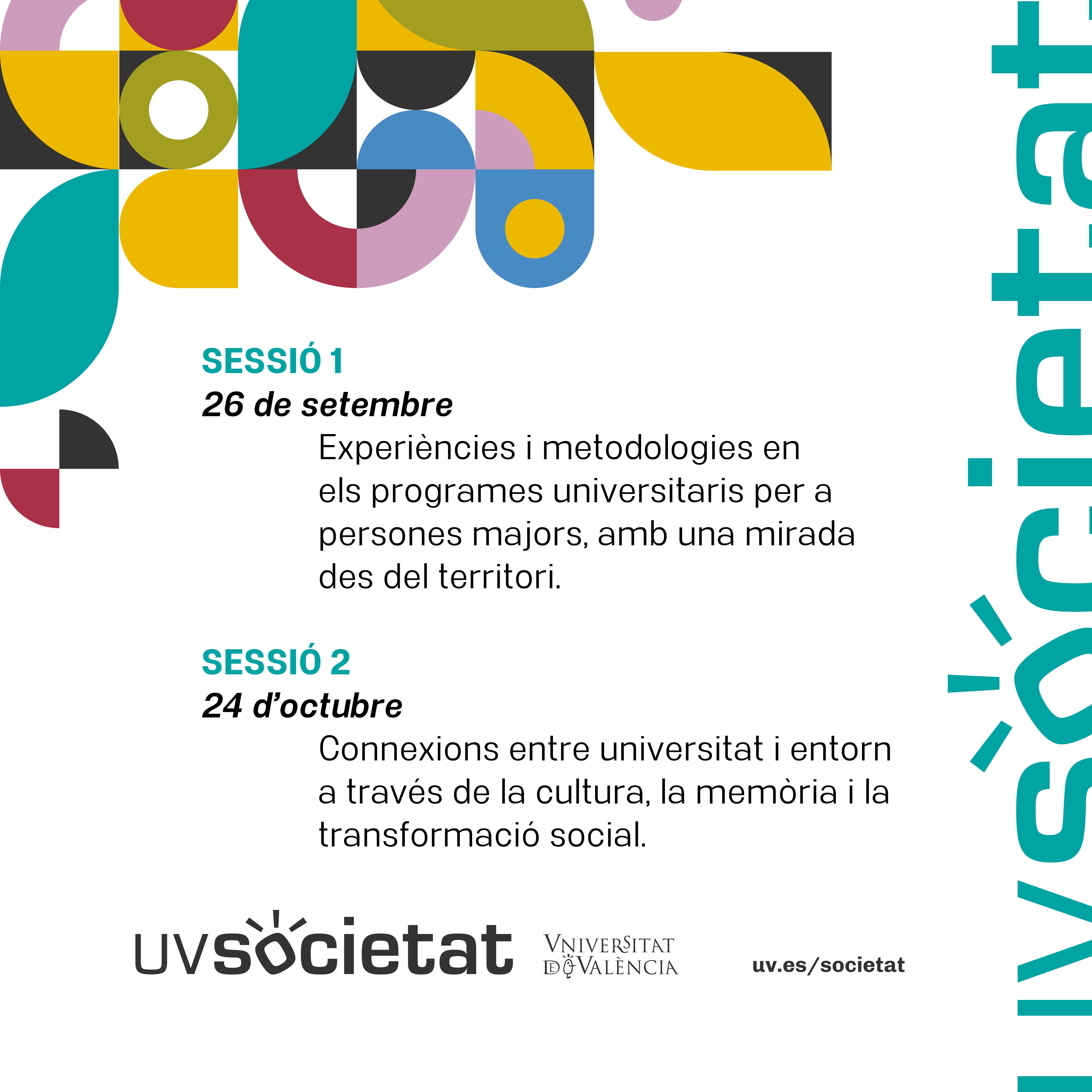 • Sessió 1 (26 de setembre): Experiències i metodologies en els programes universitaris per a persones majors, amb una mirada des del territori.