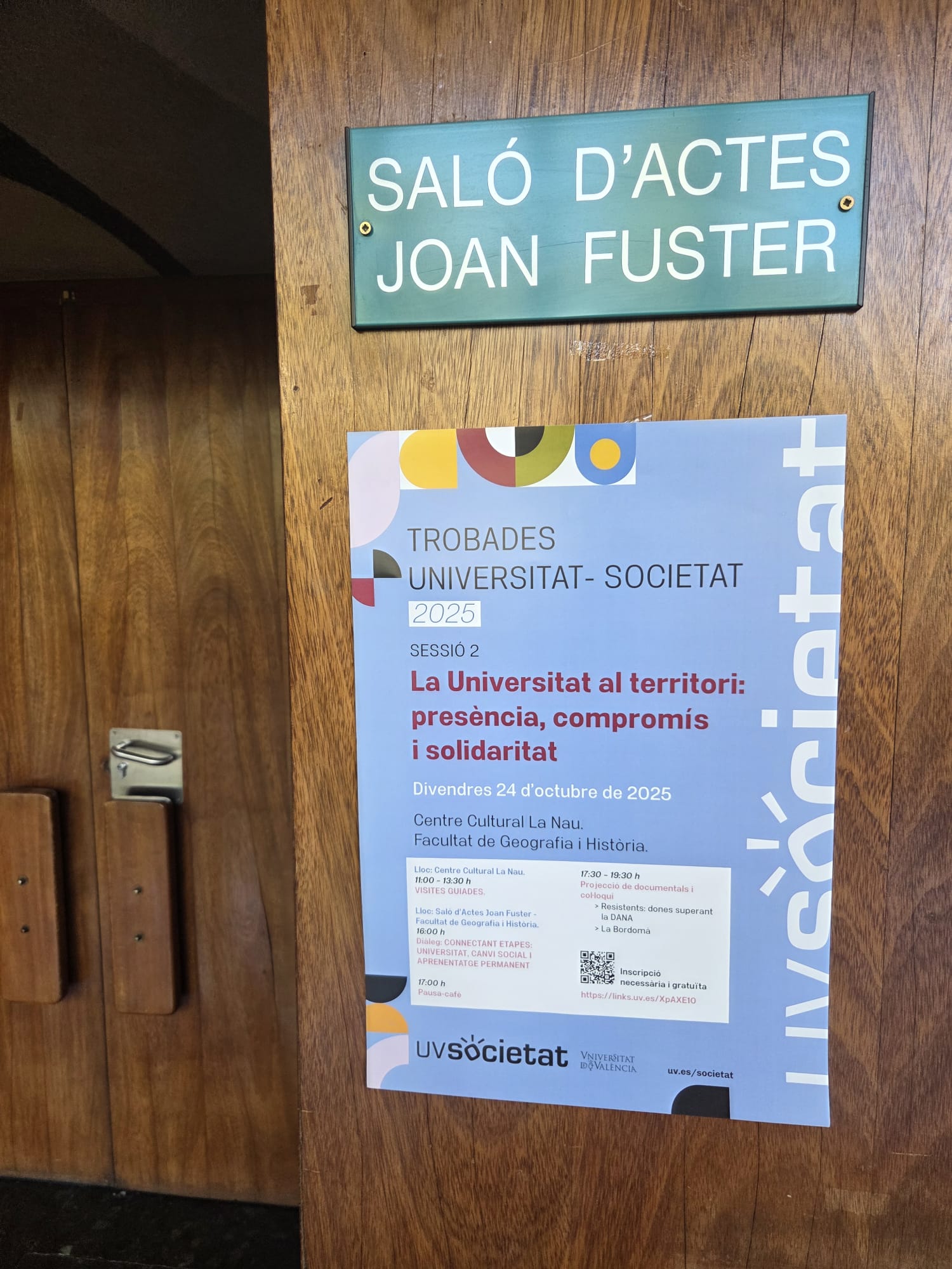 Finalment arribà el moment més emocionant de la jornada amb l'emissió dels documentals "La bordomà", sobre persones majors i la seua experiència en la DANA, presentat pel director de la Fundació Coliseé, Vicente Moros. I tot seguit, fou el torn del documental "Resistents. Dones superant la DANA", d'UV Societat i Ambra, presentat per la directora Elena Morales i per Anna Garcia, del programa de la Universitat "Salvem les fotos".