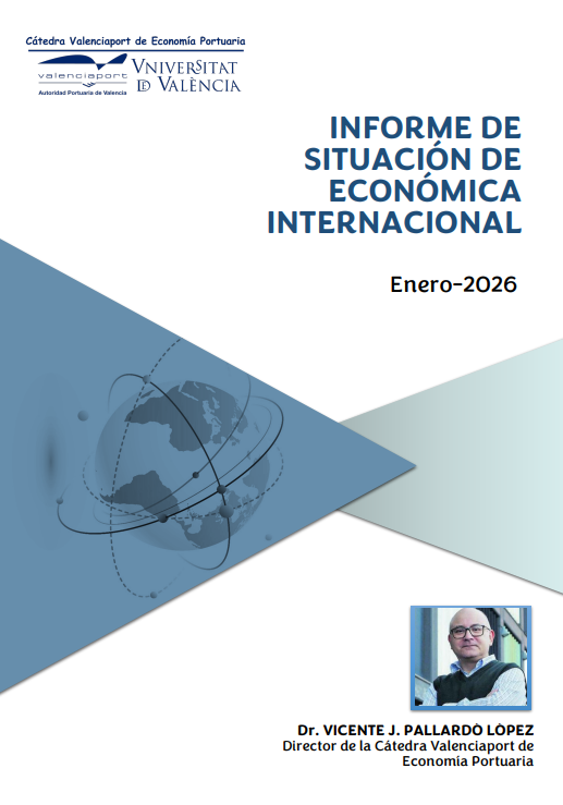 Valencia: Càtedra d'Economia Portuaria APV - UV , 2026. InformesDamos paso ya a este décimo quinto Informe Trimestral, realizado en el marco de la Cátedra Valenciaport de Economía Portuaria, que pretende acercar al lector a los elementos, datos y cuestiones más relevantes de la actual economía internacional. Esperamos que los contenidos de este Informe conduzcan a quienes nos siguen a una mejor comprensión del presente estado de la misma