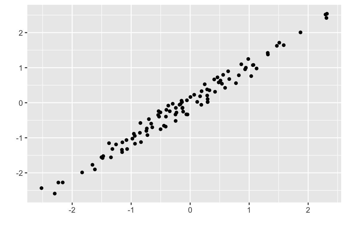 Si estamos interesados en calificar la intensidad de la relación lineal, lo hacemos en base al resultado del coeficiente de correlación. Así, al comentario realizado en el interpretación de la covarianza añadiríamos que la relación lineal entre ingresos y consumo es muy fuerte, puesto que la correlación entre ambas toma un valor muy elevado, concretamente 0.9538