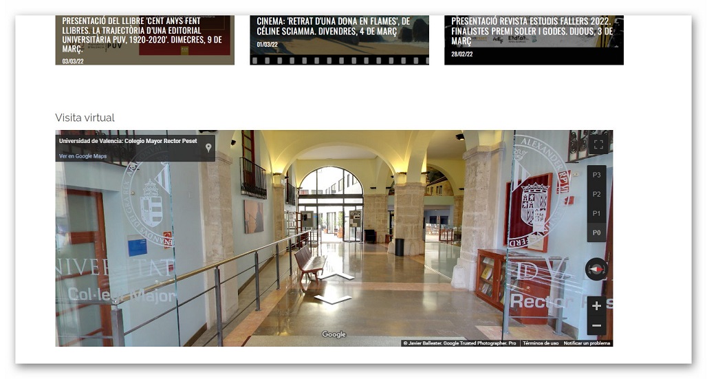 The Principal Peset Hall of Residence offers a virtual tour with Street View. It has been embedded in a central component on the main page with a total width equivalent to that of the web.