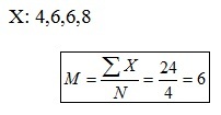 La Media (en símbolo M) es el cociente entre la suma de los datos y el número de datos.