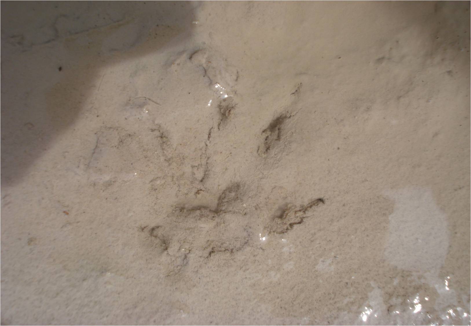 4. Por el tamaño y forma de las huellas, las dos únicas posibilidades son, bien un carnívoro (más probable), bien un roedor o insectívoro relativamente grande (ardilla, erizo).