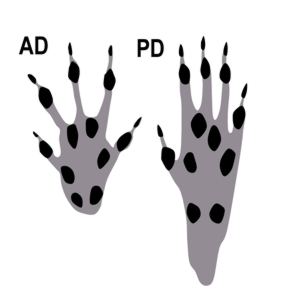Tipo de huella: Manos, plantígrado.
