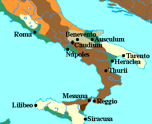 Los samnitas recibieron con júbilo las noticias de la derrota romana, e inmediatamente se unieron a Pirro. Sin embargo, Pirro no veía las cosas tan claras. Envió a Roma a un orador griego, Cineas, para concertar una paz razonable. Cineas habló ante el Senado, y su discurso estuvo a punto de convencer a los senadores, pero entonces apareció Apio Claudio Caecus, el viejo censor ciego, tan débil que tuvieron que llevarlo hasta el senado, pero habló muy claramente: nada de paz mientras un solo soldado extranjero permaneciera en Italia. Claudio infundía un gran respeto, y el senado aceptó inmediatamente su posición. Cineas tuvo que marcharse y Pirro tuvo que combatir. Marchó hacia la Campania, tomando ciudad tras ciudad, y llegó a 40 kilómetros de Roma, pero no pudo conmover la lealtad de las ciudades latinas, así que tuvo que volver a Tarento para pasar el invierno.