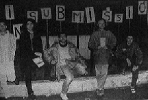 La declaración colectiva de rechazo a la PSS y la rueda de prensa en la calle eran asimismo un instrumento para hacer conocer al público la huelga de hambre que unos 50 presos insumisos estaban manteniendo desde semanas atrás en diversas prisiones del Estado Español. Dado que en todo el Estado estaban celebrándose acciones de apoyo a esta huelga, nosotros convocamos un ayuno de 24 horas que comenzamos de forma inmediatamente posterior a la rueda de prensa. Es decir, estuvimos en la calle, ayunando, algunos insumisos del MOC -a los arriba mencionados se unieron asimismo Sergi Piquer y Amand Ortiz, junto a algunas personas de apoyo- con las pancartas desplegadas frente a Capitanía. Al mismo tiempo en Castelló parte del grupo arriba mencionado convocaba asimismo rueda de prensa previa a acciones de calle y visita al juzgado. A pesar de la lluvia y el frío, las visitas esporádicas de nuestros simpáticos policías vestidos de civil y los cortes de manga de los militares -no hubo otros incidentes especialmente reseñables-, el objetivo de dar a conocer la situación actual de la insumisión en el País Valenciano y hacer aparecer en prensa la noticia de la huelga de hambre de los presos -escandalosamente silenciada por los medios de formación de masas durante semanas- se consiguió de forma bastante satisfactoria. Gracias también, naturalmente, a la presencia de todas las personas que por allí pasaron y permanecieron apoyando la acción. Esto que viene a continuación es un resumen de la declaración colectiva mencionada: