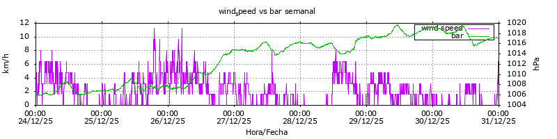 Velocitat del vent vs. baròmetre - Velocidad del viento vs. barómetro - Wind speed vs. barometer