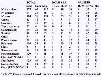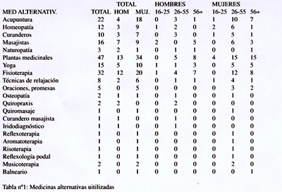 La lucha del hombre contra la enfermedad ha sido una constante en todas las sociedades a lo largo de la historia. Esta lucha se ha manifestado de diversas maneras, que pueden estudiarse como sistemas médicos. La medicina científica moderna no es sino otro sistema más, y puede ser definida como la forma de medicina que tiene como núcleo central la explicación de los fenómenos relacionados con el ser humano y sus enfermedades de acuerdo con los supuestos y los métodos de la ciencia moderna. No obstante, aunque el predominio de este sistema médico concreto en nuestra sociedad es un hecho evidente, también lo es la existencia de otros, entre los que pueden incluirse una larga lista de métodos terapéuticos. En términos generales puede hablarse de ?medicinas alternativas? o de ?medicinas complementarias?, que se definen como formas de medicina distintas a la medicina científica moderna, que corresponden al folklore o cultura popular, proceden de tradiciones distintas a la europea, o son vertientes de diversas ideologías religiosas, filosóficas y políticas, o de doctrinas especulativas. El fin principal de este trabajo es aproximarnos de forma cuantitativa a la implantación de estas medicinas alternativas en nuestro entorno. Los objetivos concretos del estudio son: 1. Determinar el grado de satisfacción respecto a las instalaciones del ambulatorio Luis Oliag, de Valencia, por parte de sus usuarios. 2. Establecer el grado de satisfacción con la asistencia médica pública por parte de las personas entrevistadas y determinar en qué medida soluciona sus problemas. 3. Determinar el grado de utilización de la medicina científica privada y en qué medida soluciona sus problemas. 4. Averiguar el grado de conocimiento sobre las llamadas medicinas alternativas. 5. Establecer por qué se recurre a las medicinas alternativas y a la medicina científica privada, es decir, si se emplean como complemento o como sustituto, y si se emplean por problemas poco relevantes o, por el contrario, se trata de problemas graves o relevantes desde la óptica del enfermo. 6. Averiguar si los usuarios de estas medicinas han comunicado al médico su utilización. 7. Establecer el perfil del usuario de este tipo de medicinas. 8. Determinar si existen variaciones a todos los planteamientos anteriores en función de distintas variables. Material y métodos Para llevar a cabo los objetivos fijados la técnica empleada ha sido la entrevista semiestructurada. El universo del estudio lo constituyen todos los usuarios del Ambulatorio de Luis Oliag, de Valencia, mayores de 16 años (unos 35.000 habitantes). El periodo de estudio abarcó 2 semanas del mes de Febrero de 1998, en días alternos y a horas diferentes, según el patrón: Lunes de 9:00 a 13:00, Miércoles de 13:00 a 16:00 y Viernes de 16:00 a 20:00, intentando de esta manera dotar de aleatoriedad a la muestra. Para la recogida de los datos se solicitó la colaboración de los usuarios; nos presentamos como estudiantes de medicina que estaban realizando un estudio sobre la aceptación de la medicina científica pública y el empleo de medicinas alternativas. Se entrevistó sólo a aquellos que manifestaron su conformidad. Una vez obtenida ésta, se invitó a que respondieran sin cohibirse, insistiendo en la importancia de la veracidad de las respuestas y asegurando en todo momento la conficialidad de sus datos personales. Las variables del estudio fueron la edad, el sexo, el nivel de formación, la distancia al ambulatorio y la ocupación. Resultados Se realizaron un total de 177 entrevistas, de las cuales 112 correspondieron a mujeres y 65 a hombres. La distribución por edades fue la siguiente: 17 personas comprendidas entre los 16 y los 25 años (8 hombres, 9 mujeres), 71 comprendidas entre los 26 y los 55 años (19 hombres, 52 mujeres) y 89 con edades superiores a los 56 años (38 hombres, 51 mujeres). En lo referente al nivel de formación, destaca el hecho de que 59 personas manifestaron tener únicamente estudios primarios, 53 el bachillerato o estudios secundarios, y 31 estudios universitarios. En cuanto a la ocupación, destacan dos grupos sobre el resto: el constituido por los pensionistas (un total de 63) y el que forman las amas de casa (39 del total). En lo relativo al conjunto de preguntas relacionadas con la valoración de la asistencia médica, la mayoría de entrevistados manifestaron desplazarse andando al ambulatorio (155 entrevistados); con una inversión de tiempo para ello entre 1 y 10 minutos (120 entrevistados). La frecuencia de visita al ambulatorio mostró el predominio de 3 grupos: Una vez al mes (56 personas), de una a seis veces al año (43 personas) y dos veces al mes (38 personas). En cuanto a la valoración del ambulatorio, se obtuvieron puntuaciones muy altas en todos los apartados, tanto en los referentes a la calidad de las instalaciones del centro, como en lo referente al mecanismo de la solicitud de consulta. Más rotundos fueron aún los resultados obtenidos en el apartado de valoración del médico, donde, a la pregunta ?¿está contento con su médico?? 173 de los 177 individuos de la muestra, respondieron afirmativamente. El tema de la medicación presenta una mayor variabilidad, aunque parece ser que predomina el cumplimento de la misma: 124 dijeron tomar siempre su medicación y 53 reconocieron olvidarse en alguna ocasión. Resulta de interés este tema ya que 116 personas manifestaron, algunas de ellas con total seguridad, no automedicarse nunca. Del total de la muestra, 102 personas habían oído hablar de las medicinas alternativas mientras que 75 manifestaron no conocerlas. Sin embargo, de aquéllos, sólo 64 nombraron algunas; las más conocidas fueron la acupuntura y la medicina natural en 25 ocasiones, la homeopatía en 17, las plantas medicinales en 14, y los curanderos en 7. De los 177 individuos que componen la muestra, 94 habían recurrido alguna vez a las medicinas alternativas o complementarias, c