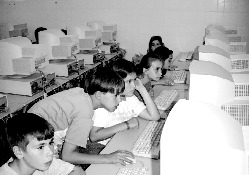 Rafa Montaner, València La Comissió Europea indica, segons dades de l´Eurobaròmetre de març de 2002, que als centres educatius espanyols hi ha 6,4 ordinadors connectats a internet per cada 100 escolars. És a dir, un ordinador «on line» per cada 15 alumnes, mig punt per damunt de la mitjana de la UE (5,9 ordinadors per a 100 alumnes). La Fundació Observatori Valencia de la Societat de la Informació (OVSI) asegura a la seua memòria pressupostària de 2002 que 200 colálegis conten amb un aula «Infocole» amb 31 ordinadors «on line». Es a dir, en teòria, un total de 6.200 computadores connectades a la xarxa. Si divididim aquests 6.200 ordinadors d´Infocole entre els 448.863 alumnes que aquest curs 2002-2003 estudien Primària i ESO a la Comunitat Valenciana, la relació és d´un ordinador en xarxa per cada 72,4 escolars. El programa «Internet a l´Escola» del Govern pretén triplicar el número d´ordinadors connectats a la xarxa en l´escola per tal d´arribar en 2005 a la proporció de 12 alumnes per ordinador. Per aconseguir aquest objectiu preveu invertir 272 milions d´euros entre 2002 i 2005. |