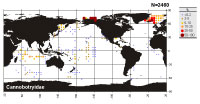 Figure 253. Geographic distribution of Carpocaniidae (Nassellaria).