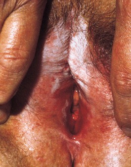 pápulas y placas blanquecinas típicas del liquen escleroso y atrófico cutáneo