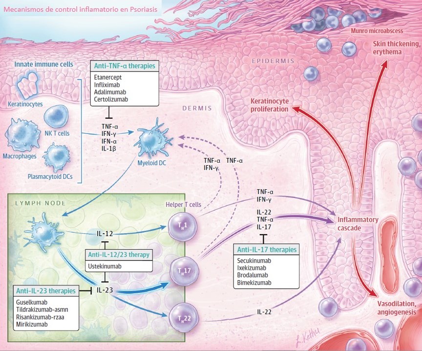 otros diagramas explicando la patogenia inmune de la psoriasis: