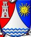 Otro: En campo de sinople, dos espadas de plata con el puño de oro, puestas en sotuer, con las puntas hacia arriba; bordura de plata, con ocho roeles de azur. En campo de plata, tres fajas ondeadas, de azur, cargada cada una de ellas de un pez de oro.